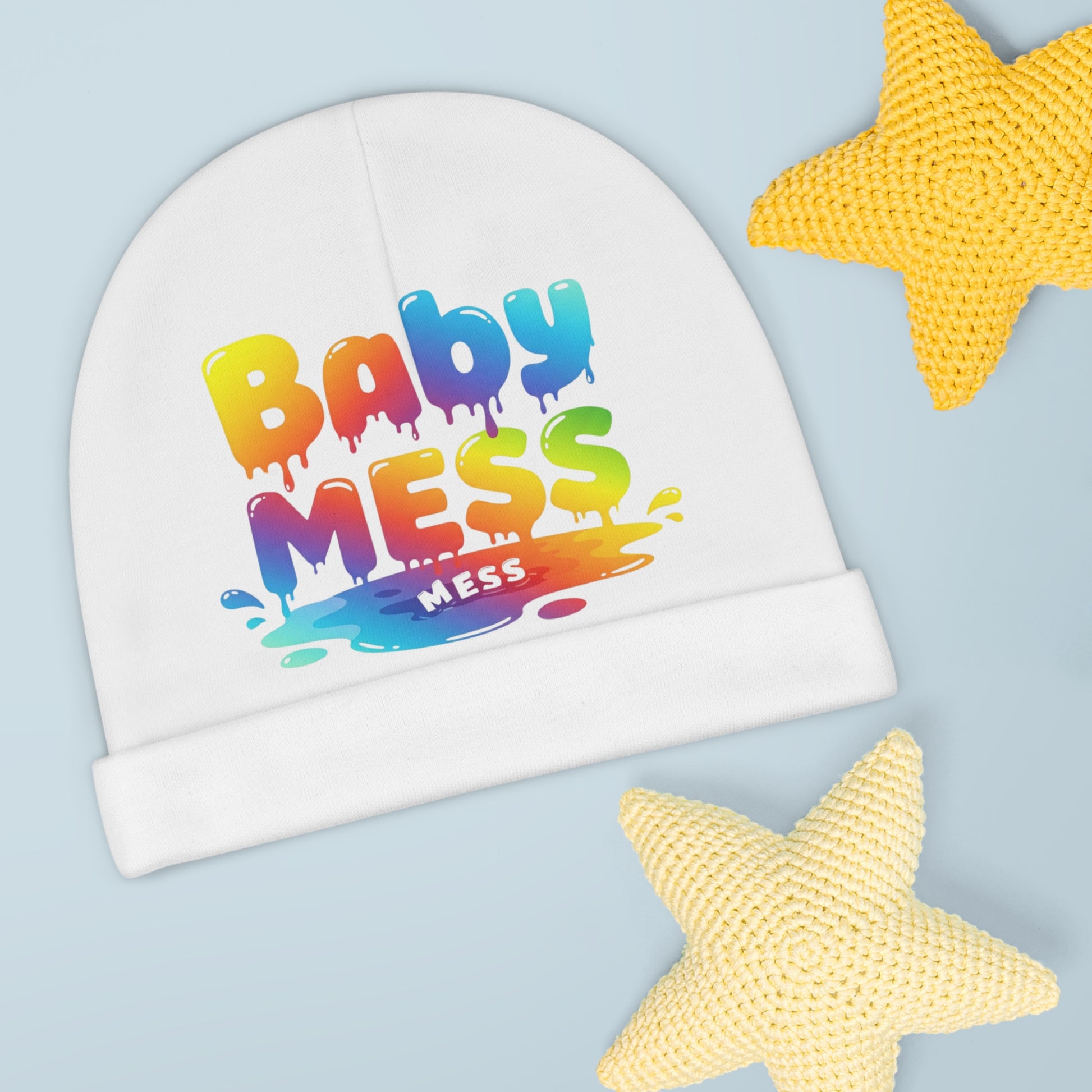 Keep your little one cozy, colorful, and full of personality with the Baby Mess Rainbow Beanie. Designed for newborns and infants with big energy, this soft and stretchy hat features the vibrant Baby Mess logo and a cheerful rainbow pattern that celebrates all the messy, magical moments of early life.